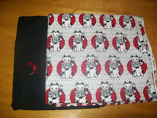 i recently found a fabric shop in called mission hall quilts it's a charity based shop that is well for crafty people but quilter's especially it has such a good variety of cotton's and I'm a lover or bargain bin's sale's etc and this is where i found this lucky cat fabric!!!!! it is designed by hoodie's collection for blank quilting 2008 www.blankquilting.com